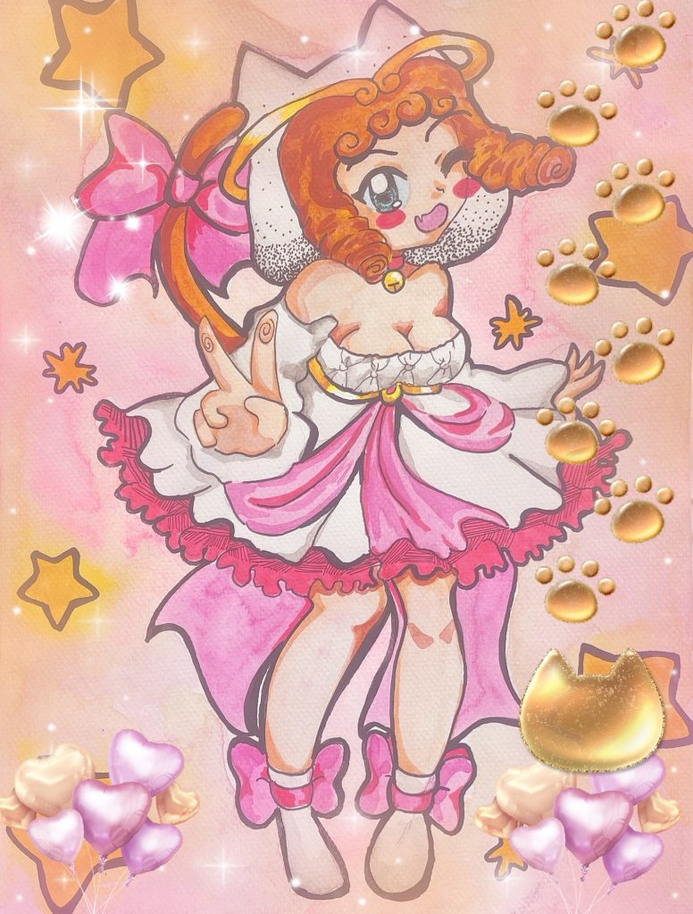 Bonnie transforms into Magical Pretty, the strong magical girl. Her abilities allows her to defy the laws of physics and smash her way through problems, sadly at the expense of speed.