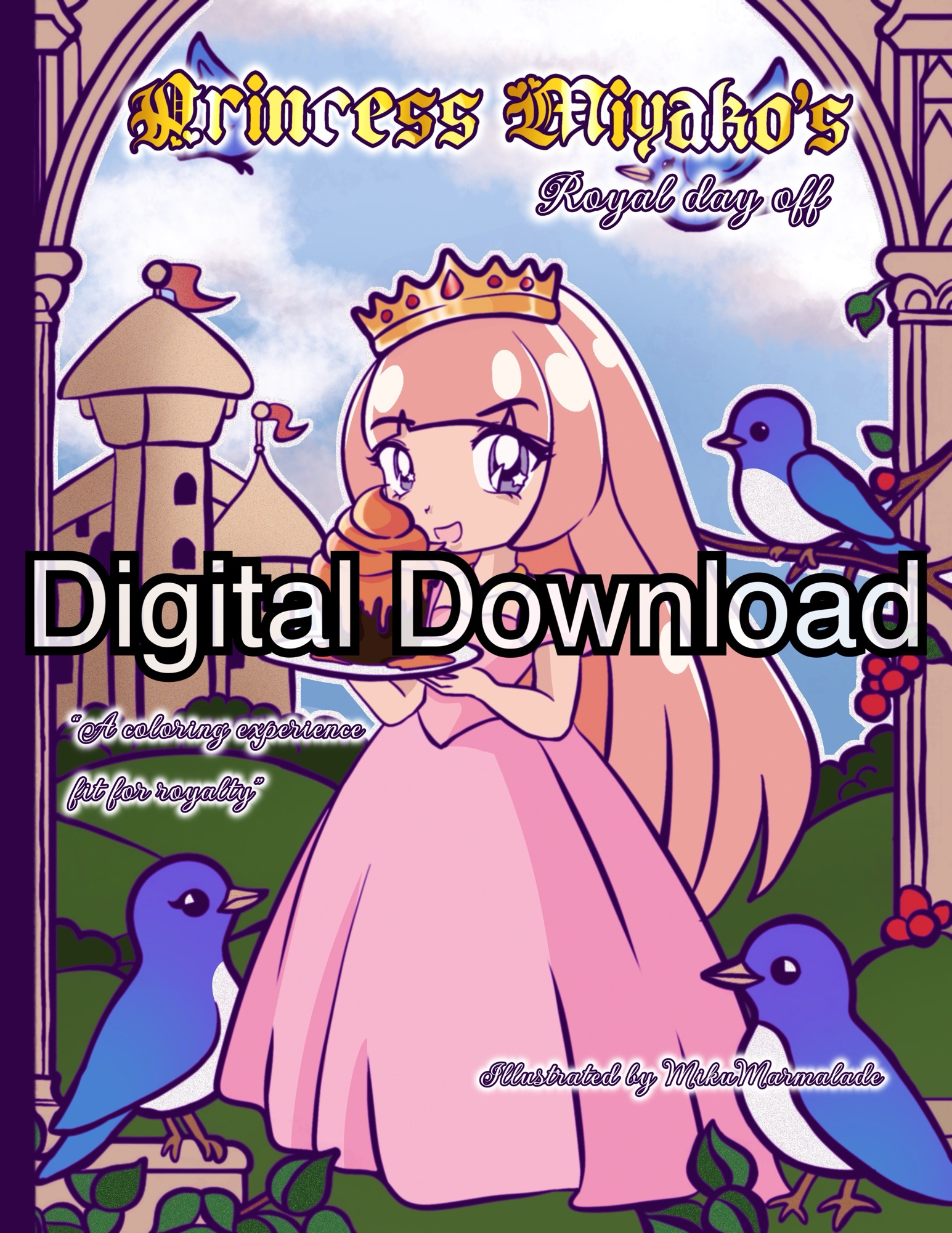 Step into a magical world with “Princess Miyako’s Royal Day Off,” a beautifully illustrated coloring book by artist MikuMarmalade. This book features enchanting and whimsical scenes that follow Princess Miyako through her day off in her royal kingdom. Each page showcases charming illustrations ranging from Miyako being delighted to Miyako crying over her tea being finished. Bring Miyako colorless world to life as she enjoys cupcakes, tea, nap time, and other adventures around her castle