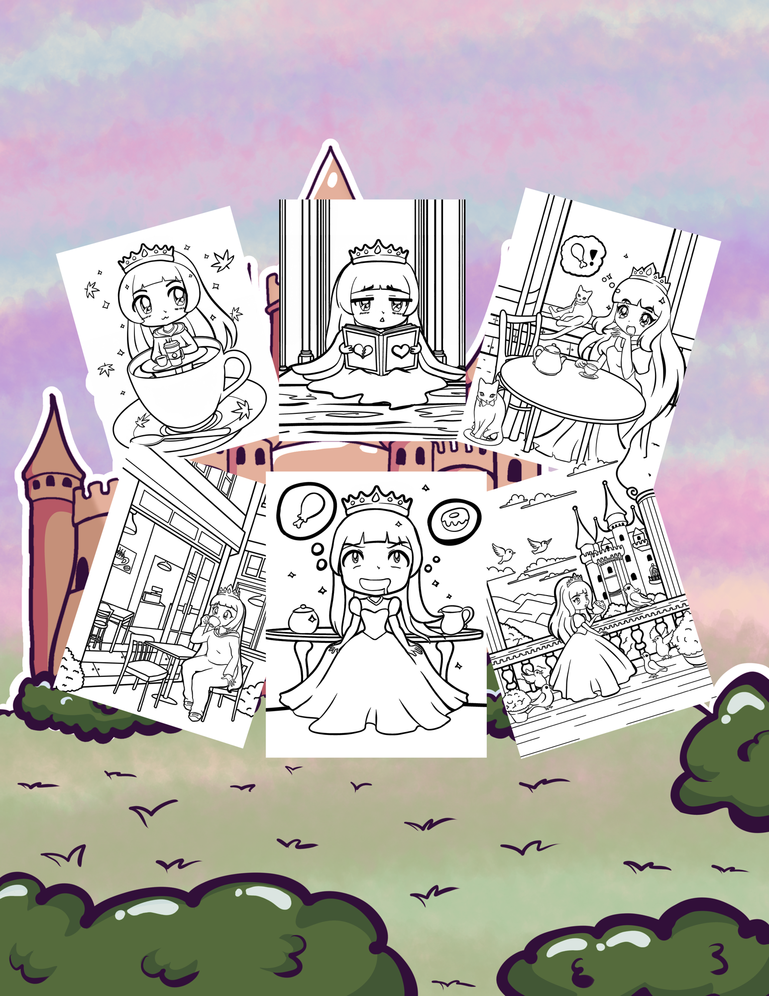 Step into a magical world with “Princess Miyako’s Royal Day Off,” a beautifully illustrated coloring book by artist MikuMarmalade. This book features enchanting and whimsical scenes that follow Princess Miyako through her day off in her royal kingdom. Each page showcases charming illustrations ranging from Miyako being delighted to Miyako crying over her tea being finished. Bring Miyako colorless world to life as she enjoys cupcakes, tea, nap time, and other adventures around her castle